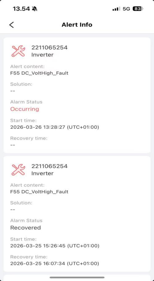 - Korjausprioriteetit: oikea PV-merkkijonojen konfiguraatio poistamaan perimmäinen syy ja optimoida akun ja invertterin parametrit vahvistavien olosuhteiden poistamiseksi ja toistumisen estämiseksi.